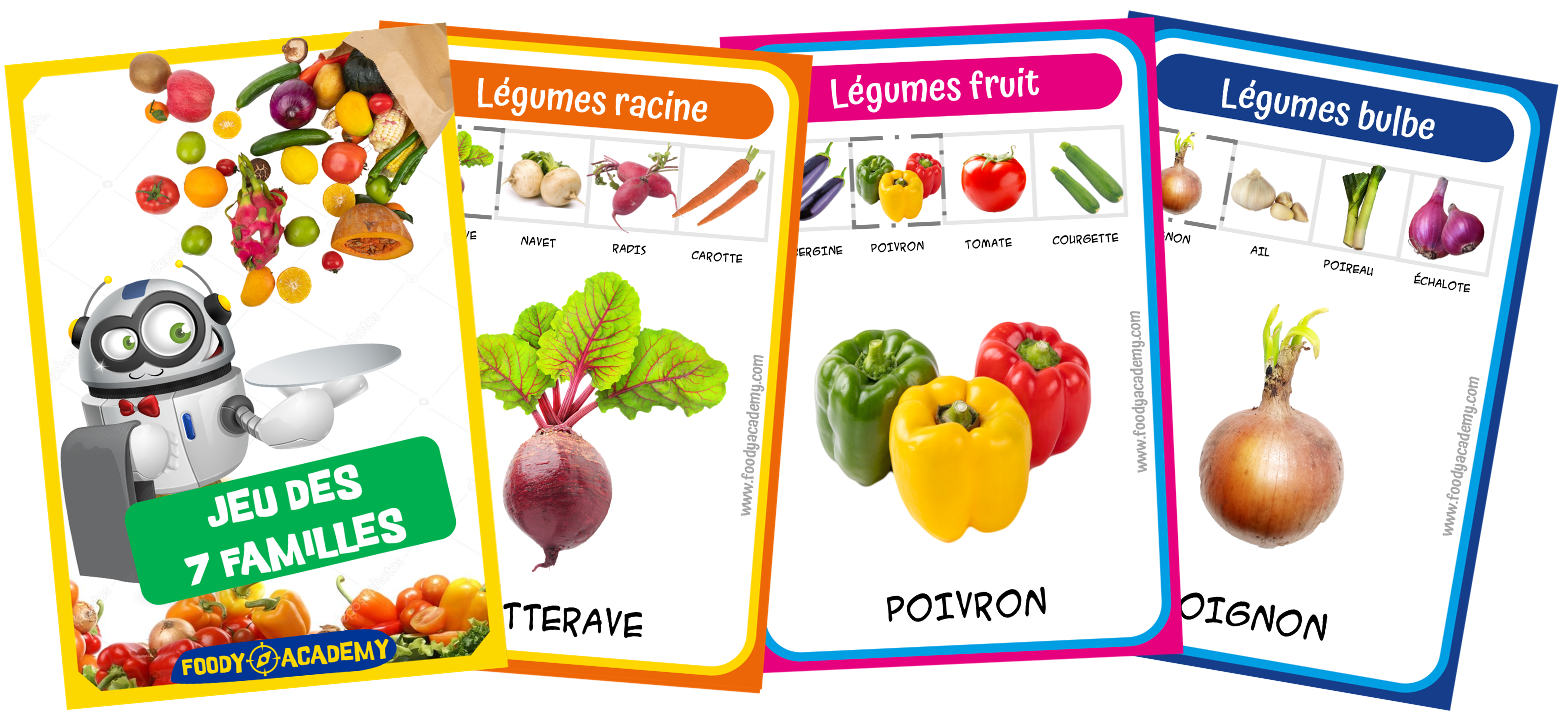 - Un jeu de 7 familles de légumes (32 cartes )pour apprendre en s'amusant.