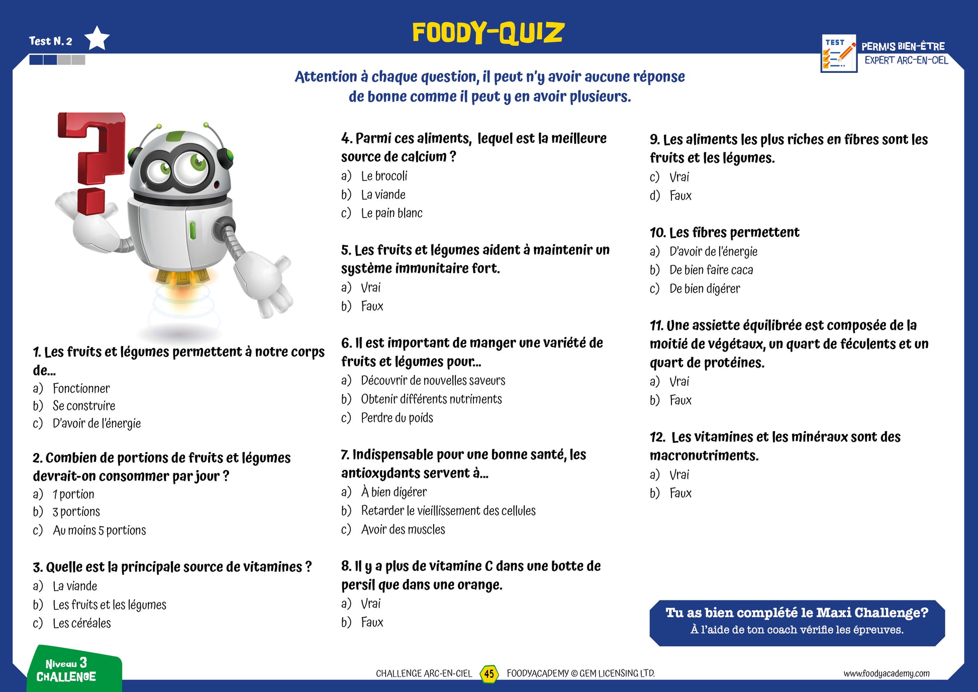 Consommes-tu assez de fruits et légumes ? Manges-tu avec tes 5 sens ? Sais-tu reconnaître les aliments transformés? Fais-tu les bons choix alimentaires ? Prêt à passer au fourneau ?