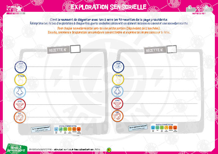 ➼ 1 DÉFI GOÛT (6 épreuves) pour manger avec les 5 sens,